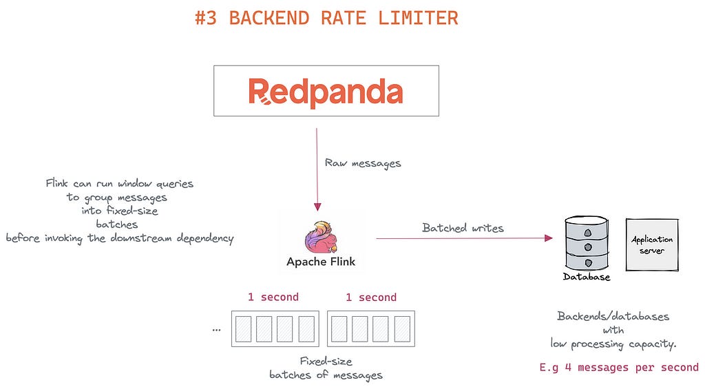 Suppose a use case requires you to write an application that consumes records from Kafka and writes them to an external system, such as a cloud database (AWS RDS, for example). If the message arrival rate at Kafka is higher than the number of writes allocated for the database, it will soon run out of IOPS and halt write operations.
